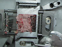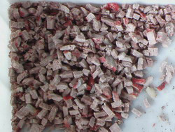 用途:能将-3~4℃的冻肉一次性切成肉丁。 特点: 1、本机配制德国减速机(诺德牌),西门子电器,欧姆龙继电器,调速阀(美国派克) 2、液压电机为台湾群策,电磁阀为中德合资(华德牌) 3、配套液压风冷系统保护油封,使用寿命更长,不漏油 4、切丁机刀架都是由不锈钢浇铸而成,坚固耐用 5、本整机材料全304不锈钢,品质保证 技术参数: |